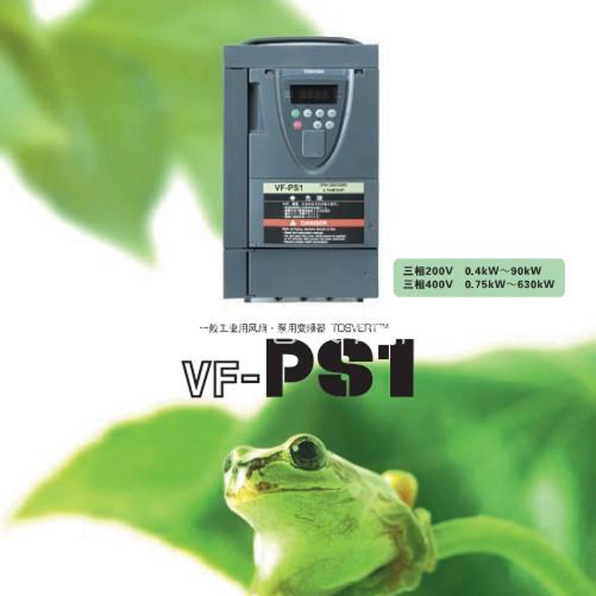 東芝變頻器VF-PS1風扇、水泵專用變頻器PS1 特長: 搭載有適合于風扇,泵使用的專用性能(省能,自動運轉)、最大容量范圍至630KW為止。 【輸入功率電壓等級/容量范圍】 3相200V 0.4-90KW