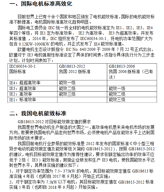 國際電機(jī)能效標(biāo)準(zhǔn)和中國電機(jī)能效標(biāo)準(zhǔn)的
